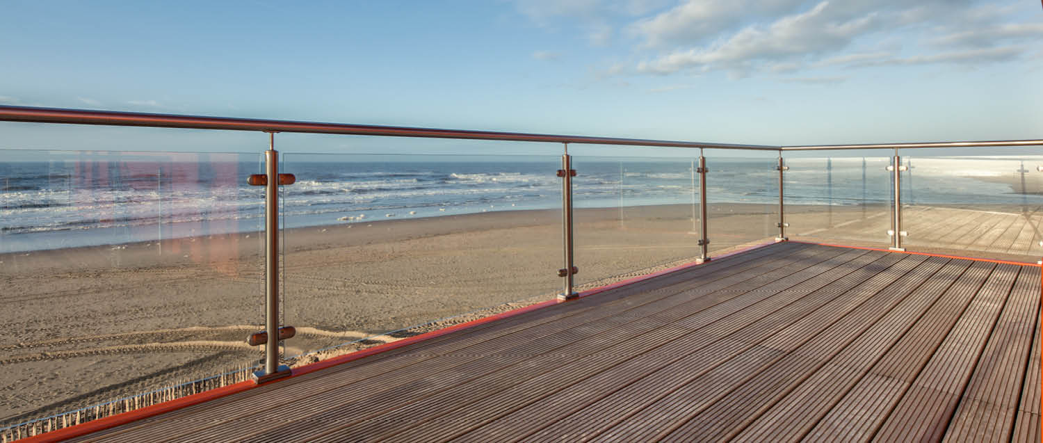 Top mounted glass balustrade with stainless steel post for exterior